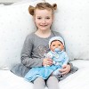 Tiny Treasures are realistic Baby Dolls that look and feel just like a real baby. They are the perfect newborn size and weighted body for life-like feel. They have beautifully hand-painted features, super soft baby hair and jointed limbs for realistic movement. Sleepy eyes close when they lay down. You wil love their exqusitely detailed outfits. This beautiful brown haired doll comes with a layette set.