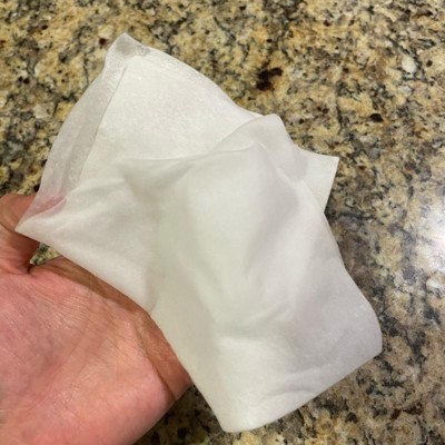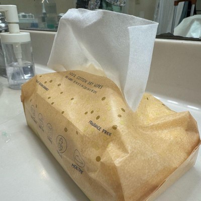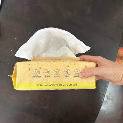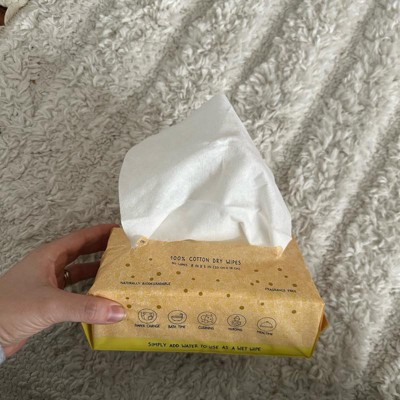 [This review was collected as part of a promotion.] Wow we’re so happy to find these cotton wipes. Used dry or wet, and will last through a few used. I have guilt tossing away synthetic single use things that don’t decompose. This one is better than average baby wipes in that it has nothing in it, dip in water or not voila. Medium thick. Nice sized and won’t tear or rip easily. Great product to keep at home and on the go.