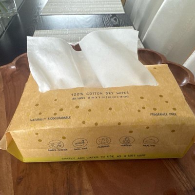 [This review was collected as part of a promotion.] These dry wipes are really nice cotton sturdy material. The box comes with six packs of wipes and the best part is because they are a dry wipe you can use them for anything as you control if they are wet or not and to what extent. These are my favorite wipes to have near our table for after eating cleaning stuff up off my child or the floor. In addition, we use them in our diaper bag for on the go clean up but can also be used like a place mat. These are amazing and so durable they will easily become a favorite for you!