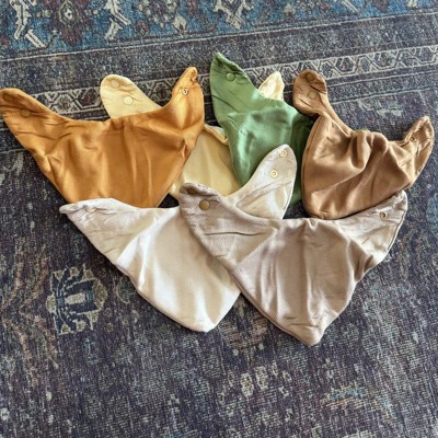 [This review was collected as part of a promotion.] Love this 6 pack of bandana bibs! The colors are really nice. I bought the neutral color set and I especially love the orange, brown and green shades. There are two bibs that lean more peach/pink and I probably won’t use much for my son, but overall really nice shades. I’m new to the kaffle fabric and it’s really nice and soft! I also like that they have a water resistant layer. These fit my 3 month old well with plenty of room to continue to grow into them. Works great for his drool and spitup and saves many outfits! I received an incentive to write this review.
