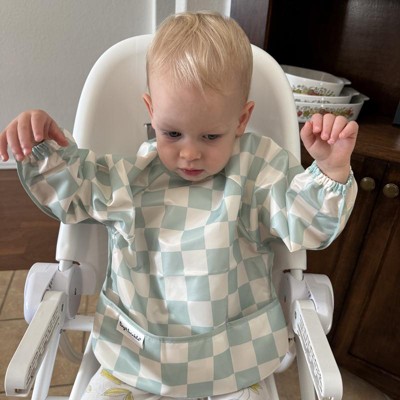 [This review was collected as part of a promotion.] We’ve never owned a smock long-sleeve bib before, but this is a game changer! My almost 2 year old is definitely in her messy eating era and we often will take her clothes off before eating certain foods, but this bib does the trick instead. The sleeves have elastic so they seal up their arms and I love that they have the pocket to catch crumbs and droppings. The blue checkered pattern is adorable and I’m excited that these roll up for travel. This would be perfect at a restaurant. My 2 year old is wearing the small size and it still fits her with plenty of room to grow into. I received an incentive to write this review.