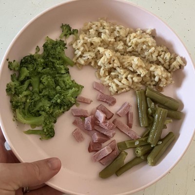 We typically use the trays with the dividers for our kids meals, but on the weekends we love making pancakes and no issues with the fruit touching the main course on those days. However the trays aren’t big enough for the pancakes and make cutting trickier. I bought these plates with the lips to hold the syrup on the plate as well as the pancakes from flying off. I love these, and the colors are appealing too.