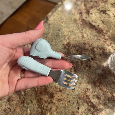 [This review was collected as part of a promotion.] These adorable little elephant utensils are the perfect size for little hands! My 15 month old loved using them. The length from handle to the end is just right so they’re not struggling to get it into their mouths. The little elephant on the end is so cute. Loved the blue color also. Would definitely recommend for young babies learning to use their first utensils I received an incentive to write this review.