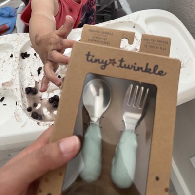 Tiny Twinkle Toddler Utensils, Spoon and Fork Set, BPA-Free Kids Silverware With Silicone Handle for 12 Months & Up