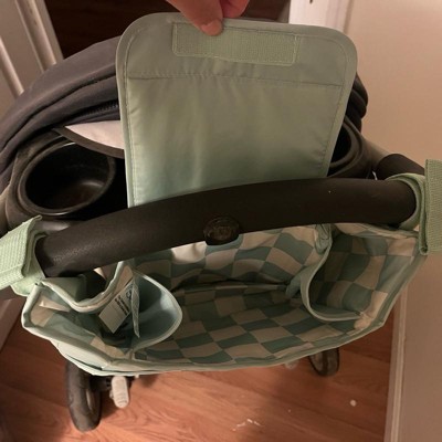 [This review was collected as part of a promotion.] I bought this stroller organizer caddy in sage checkers, and it is perfect for storing all of the necessities for my toddler and my newborn. There are multiple pockets for holding things like snacks, drinks, pacifiers, etc. plus my phone. It provides easy access to all of those items instead of having them bounce around in the bottom of the stroller basket. It is easy to install and fit to every stroller. The color is pretty and goes well with our green stroller. I love that it is made from recycled water bottles just like the rest of the Tiny Twinkle products.