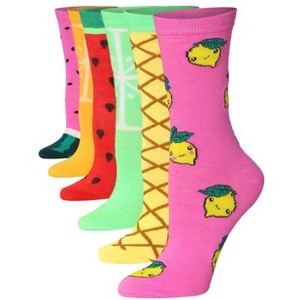 Tipi Toe Women's 6 Pack Colorful Light Fruity Pastels Patterned Lightweight Crew Socks - 1 of 4