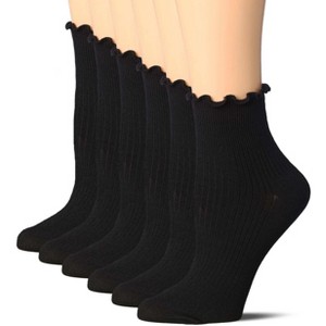 Tipi Toe Womens Black Turn-Cuff Solid Lettuce Edge Lightweight Quarter Length Ruffle Socks