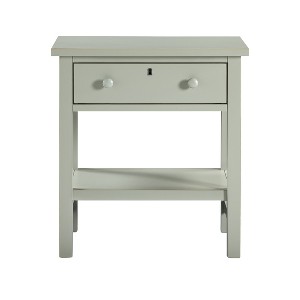 Add a touch of rustic elegance to your bedroom with the Nightstand. Crafted from poplar wood, MDF, and plywood, this nightstand combines durability with timeless design. Featuring one spacious drawer with French dovetail construction for smooth operation, it offers reliable storage for bedside essentials. The charming faux keyhole detail and wooden knob provide a classic, traditional accent, while the distressed finish creates a refined, rustic look that pairs seamlessly with farmhouse, vintage, or cottage-style. Available also in Antique Gray, this nightstand balances style and function for any bedroom.
