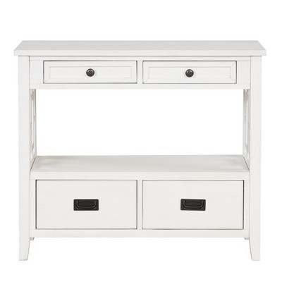 TiramisuBest 36" Farmhouse Console Table with 4 Drawers and Shelf,Pine Wood Entryway Sofa Table for Living Room Hallway,Antique White