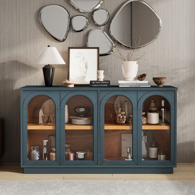 TiramisuBest 4-Door Buffet Cabinet with Storage, Wood Sideboard Cabinet with Unique Arc Handles and Adjustable Shelves