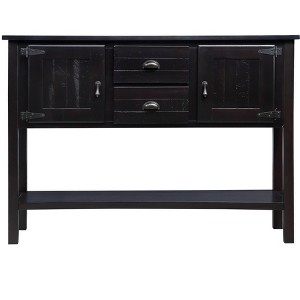 - 『Ample Storage Space』: This wood console table is designed with 2 drawers and 2 cabinets, which provide you with ample storage space to classify and store different belongings. Also, the top board and bottom shelf can display various items, such as fruit, tableware, plants, glassware and so on.