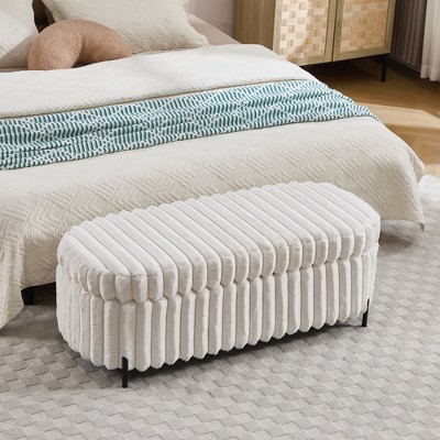 TiramisuBest 49.2" Wide Faux Fur Flip-Top Storage Bench,Bed End Stool & Foot Rest with Metal Legs for Living, Entryway, Dorm, Bedroom, Beige
