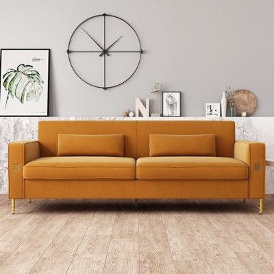 TiramisuBest 57" Light Gray Woven Fabric Loveseat with Tufted Cushion, Pocket Coil Seating & Black Metal Legs