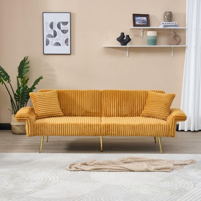 TiramisuBest 79" Corduroy Sofa Bed, Green Foldable Double Couch with Adjustable Armrests for Living Room & Apartments
