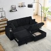 TiramisuBest 80In Corduroy Multi-Function Sofa with Hidden Reclining, Space-Saving Design, Armrests, Cup Holders & Removable Footstool, Black