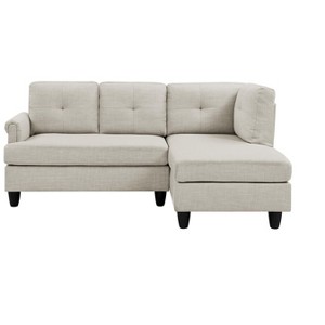 Redefine your living room with the 2-Piece Right-Facing Sectional Sofa, a perfect balance of comfort, elegance, and space efficiency. With its modest footprint and right-hand-facing chaise, this L-shaped sectional is ideal for small to medium-sized living rooms, apartments, or cozy corners. Built on a durable engineered wood frame and supported by circular block feet with a sleek black finish, this sectional offers solid support and timeless appeal. The plush cushions are filled with foam and cotton for lasting comfort, while the 100% polyester upholstery ensures durability and easy maintenance. The blend of geometric tufted and solid accent pillows adds contemporary flair while maintaining a classic, inviting look. Whether you're lounging, entertaining, or simply relaxing, this sectional brings functionality and understated charm to your home.