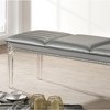 Bring a touch of glamour and sophistication to your bedroom or vanity area with this Antique Classic Silver Bench from the contemporary collection. Crafted from solid wood and finished in a sleek silver tone, this bench features clear acrylic legs and sparkling crystal and mirror accents, creating a luxurious and modern aesthetic. Measuring 54" W x 18.1" D x 19.6" H, this bench comfortably seats one or two people, making it perfect for bedrooms, dressing areas, or vanity setups. Its elegant design enhances modern and classic interiors, adding a regal statement to your home d¨¦cor. Designed for easy assembly, this bench combines opulent style with practicality. It is an ideal choice for anyone looking to add both comfort and sophistication to their living space.