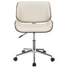 Designed for exceptional comfort, this chair offers a balance of support and relaxation for extended periods, ensuring comfort during prolonged useThe chair exudes tasteful elegance with its clean, low-profile silhouette, accentuated by a curved, padded seat and gently curved seat back, providing both comfort and sophisticationFeaturing ecru leatherette upholstery, complemented by walnut and chrome trim, the chair boasts a luxurious palette, enhancing its visual appeal and adding a touch of opulence to any office spaceWith adjustable seat positions, this chair offers customizable seating options, ensuring ergonomic support tailored to individual preferences and needsEquipped with caster wheels, this chair provides easy portability and maneuverability, allowing for seamless movement around the office or workspace