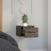 Maximize floor space with the Boa Floating Nightstand, wall-mounted to keep your bedroom clutter-free. The compact top (13.8"W x 13.2"D) holds lamps or books, while the 10.4" drawer stores essentials. Dark brown particleboard blends with rustic or modern themes.