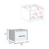 Elevate your space with this light grey floating nightstand, featuring a compact 13.8"W surface and 10.4"W drawer for smart storage. Crafted from durable particleboard, its minimalist design blends seamlessly with modern, Scandinavian, or apartment decor. The space-saving wall-mounted style keeps floors clear while adding contemporary flair to bedrooms, dorms, or small living areas.This space-saving floating nightstand features easy wall assembly with clear instructions for hassle-free installation. The secure mounting system creates a sleek floating effect using just a screwdriver to lock the cam and bolt assembly - no tools required beyond what's included. The compact 13.8"W x 13.2"D top surface provides just enough space for your bedside essentials while maintaining a minimalist look. Its smart design keeps your nighttime must-haves within reach without cluttering your bedroom floor space.