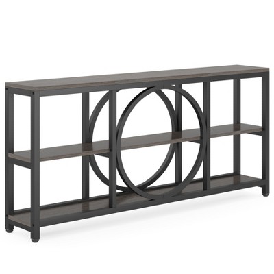 - [Versatile for Any Space]:Whether placed in a hallway, study, or living room, this console table seamlessly fits into any setting. Its geometric design and combination of materials bring both style and functionality, offering ample space for decorative items or essentials.
