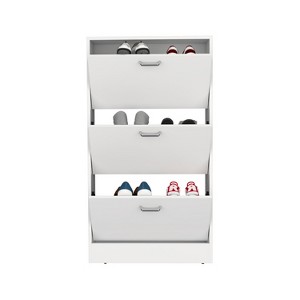 Three pull-down compartments provide discreet and efficient storage for up to 18 pairs of shoes.