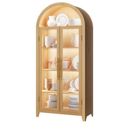 Lighted Glass Curio Display Cabinet provides versatile storage solution for Oak MDF+glass finish. With 70.08" height and 82.92lbs capacity, perfect for home office. Features include [Exquisite and Refined Aesthetic] This cabinet showcases an exquisite and refined aesthetic, elevating the ambiance of any space with a touch of opulence.. This product is designed for efficient storage and organization.