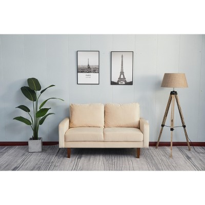 TiramisuBest Loveseat with Ottomans, Corduroy Fabric Modular Sectional Sofa, Comfy Deep Plush Couch with Two Pillows for Living, Bedroom, Beige
