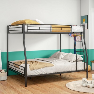 【Space-Saving Metal Bunk Bed Design】: This space-saving full XL over queen metal bunk bed meets all your needs and expectations. Features easy access guardrails, build-in ladder and thick metal tube support slat system. Accommodating a XL full and Queen mattress, this sturdy metal bunk bed will last through years of play.