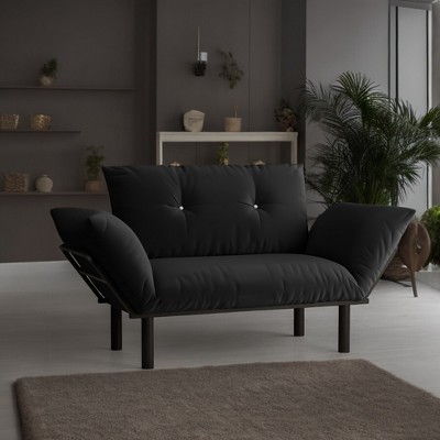 TiramisuBest Metal Legs Futon Loveseat, Black Chenille Upholstery, Compact 2-Seater Sofa, Durable Metal Frame, Easy Assembly