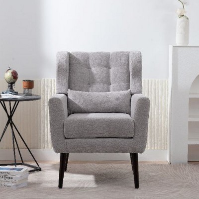 TiramisuBest Mid-Century Modern Accent Chair, Upholstered Armchair with Pillow & Solid Wood Frame for Living, Bedroom, Balcony (Antique Dark Grey)