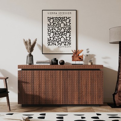 - [ Elegant V-shape Fluted Design ] - This sideboard features V-shaped grooves on its door panels, with vertical grooves crafted from solid wood strips to create a refined textured effect. Its warm wood-tone finish effortlessly complements any decor style—from traditional farmhouse to contemporary furnishings—making it a versatile choice for your home.