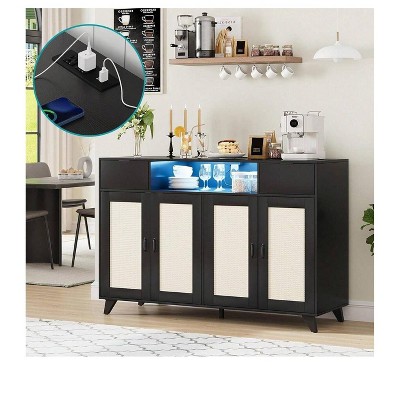 Elevate your space with this minimalist black lacquered cabinet featuring sleek golden accents and durable metal legs. Crafted from high-quality MDF, this versatile piece (80lb top/25lb shelf capacity) offers adjustable shelving and concealed Euro hinges for clean lines. Perfect for living rooms, dining areas, or entryways, its modern design blends style and function effortlessly. Simple assembly with included hardware and instructions. (60"W x 16"D x 34"H)