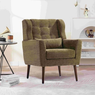 TiramisuBest Modern Chenille Armchair w/ Pillow & Solid Wood Legs - Upholstered for Small Spaces & Bedroom Olive Green