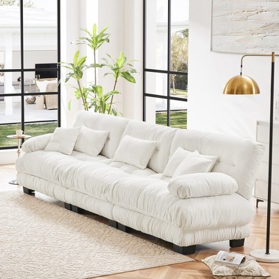 TiramisuBest Black SOFA Modern Cream Velvet Sofa with Gold Accents - Sleek Channel-Tufted Upholstery, 3-Seat Couch for Living Room and Office Decor