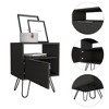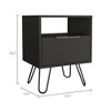 Elevate your space with this industrial-chic nightstand (22.8"H x 17.7"W x 13.7"D), featuring a roomy 14.3" drawer + open shelf for smart storage. The durable laminated particleboard resists stains/scratches while hairpin legs add mid-century flair. Perfect as bedside table or living room accent.Easy to Assemble: With clear instructions to follow the assembly of each labeled part, all you need is a screw driver to lock the cam and bolt assembly system. Multipurpose: Use it as a nightstand in your bedroom or as a Side table or End Table in your living room