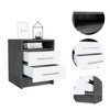 Maximize small spaces with this industrial-chic nightstand (19.9"H x 15.7"W), featuring two spacious 13.2" drawers with smooth metal glides for wallets/remotes, plus a handy top shelf for phones/books. The smokey oak / white finish and metal handles complement modern farmhouse decor, while the tool-free cam-lock assembly transforms it effortlessly from bedroom essential to living room side table.