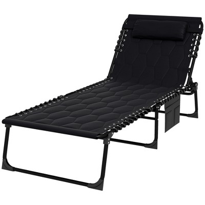 TiramisuBest Outdoor Lounge Chair, Adjustable Folding Chaise Lounge, Tanning Chair with Sun Shade for Beach, Camping, Hiking, Backyard, Gray