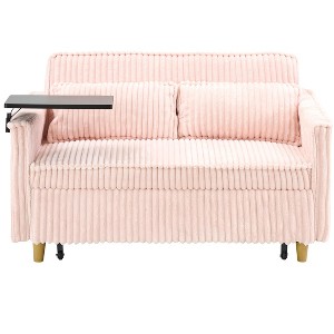 TiramisuBest Black Corduroy Pull-Out Sofa Bed with Movable Tabletop & USB Charging