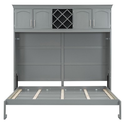 TIRAMISUBEST Queen Size Murphy Bed Wall Bed with Top Cabinets & Wine Rack, Space Saving Folding Murphy Cabinet Bed, No Box Spring Needed