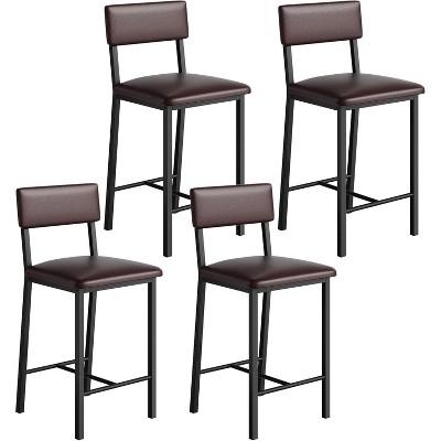 TiramisuBest Rattan Leather Dining Chairs 18 Inch Set of 2 Faux Leather Woven Strips Solid Wood Frame Kitchen Living Room Side Chairs, Brown