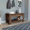 Enhance organization and everyday convenience with the Storage Table, a multifunctional piece designed for modern living spaces. Featuring a liftable tabletop, lower storage shelf, and integrated shoe rack, this storage table offers a smart solution for keeping daily essentials neatly stored and easily accessible. Crafted from durable particle board with sturdy four-leg support, this table provides reliable stability for daily use in entryways, living rooms, or bedrooms. The lift-top design opens smoothly with metal hinges, revealing hidden storage space ideal for shoes, bags, blankets, or frequently used household items. The lower shelf adds extra room for organizing footwear or storage baskets, helping maintain a clutter-free environment. Finished in a rich dark brown tone, this storage table blends effortlessly with farmhouse, rustic, and modern d¨¦cor styles. Its compact yet functional size makes it perfect for doorways, small apartments, or multipurpose rooms where space-saving furniture is essential. Easy assembly and a practical layout make this table a versatile addition to everyday home organization.