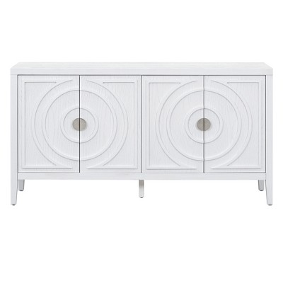 [Multi-functional Partitioned Storage]: This sideboard is designed with multi-functional storage partitions.The top tabletop can be used for greenery/free mix and match decorations, the semi-open shelf is used for daily necessities, the center closed storage cabinet is used to hide shoes/toolboxes and other items. This sideboard can hide the clutter and show the beauty at the same time!