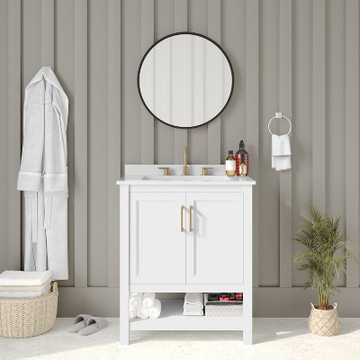 TIRAMISUBEST Traditional Bathroom Vanity with 36" Ceramic Sink, Bathroom Floor Cabinet with Soft Close Doors and 4 Drawers