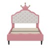 TIRAMISUBEST Twin/Full Size PU Leather Princess Bed with Button Tufted Headboard, Kids Platform Bed Frame with Crown