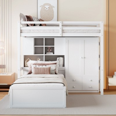 TiramisuBest Twin size Loft Bed with a Stand-alone bed,Shelves,Desk,and Wardrobe,White