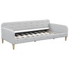 A convenient design gets a modern update with this tasteful daybed. Crafted from solid pine wood and MDF, this bed is upholstered in Linen fabric over foam filling. This daybed strikes a soft silhouette with a high sideboard sporting biscuit-style button-tufting. Square recessed arms frame space for a mattress of your choice. We love that this daybed is versatile enough to be used as a couch during the day and accommodate overnight guests in the evening. Best of all, it accommodates your preferred mattress not included without a box spring.