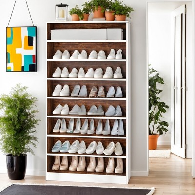 TIRAMISUBEST Versatile Tipping Bucket Shoe Cabinet with 3 Flip Drawers, Entryway Shoe Organizer with Drawer, Freestanding Shoe Rack w/ Pull-down Seat