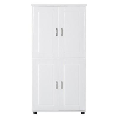 TiramisuBest Tall and Wide Bathroom Floor Storage Cabinet, Bathroom Storage Unit, Freestanding Cabinet with 4 Doors, Adjustable Shelves, White