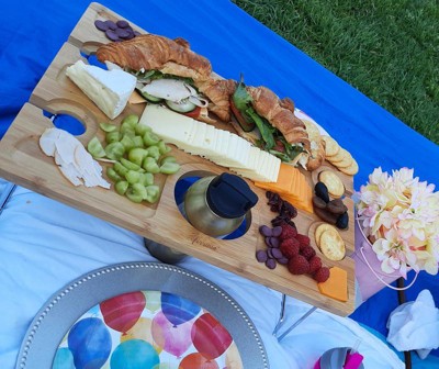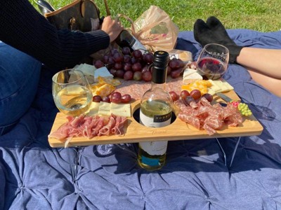 Tirrinia 15.7" x 11.8" Eco - friendly Natural Bamboo Wine Picnic Table, Folding Portable Outdoor Wine Glasses & Bottle, Snack and Cheese Holder Tray